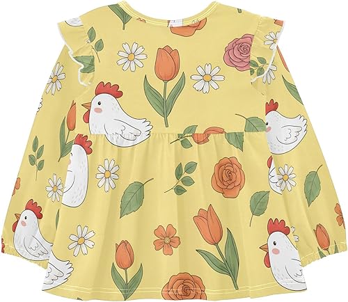 Toddler Girl Long Sleeve Shirt Ruffle Kids Blouse Tops Tee Shirt 18M-5T(Chickens Flowers Roses Leaves,18 Months)