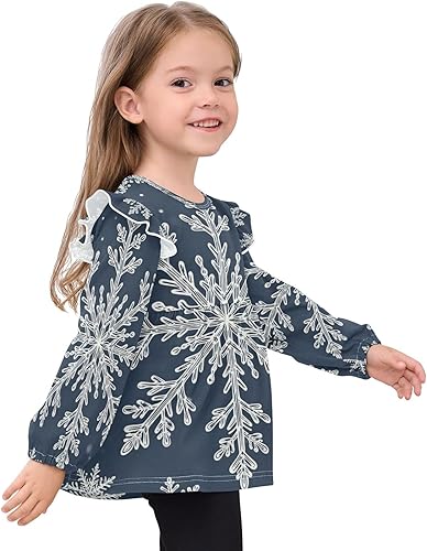 Toddler Girl Long Sleeve Shirt Ruffle Kids Blouse Tops Tee Shirt 18M-5T(Snowflake Winter,5T)