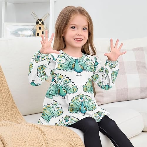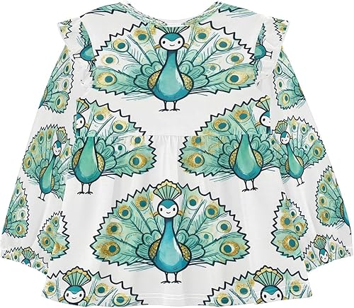 Toddler Girl Long Sleeve Shirt Ruffle Kids Blouse Tops Tee Shirt 18M-5T(Peacock Green Feathers,18 Months)