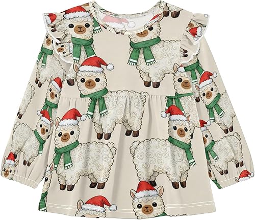 Toddler Girl Long Sleeve Shirt Ruffle Kids Blouse Tops Tee Shirt 18M-5T(Alpaca Christmas Santa Hat Scarf,18 Months)