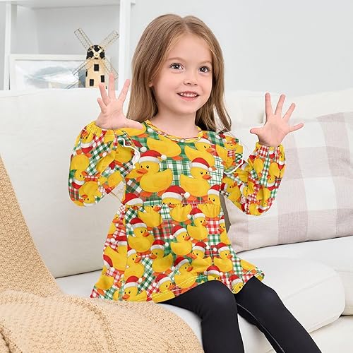 Toddler Girl Long Sleeve Shirt Ruffle Kids Blouse Tops Tee Shirt 18M-5T(Yellow Ducks Wearing Santa Hats Plaid,4T)