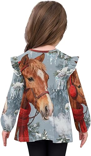 Toddler Girl Long Sleeve Shirt Ruffle Kids Blouse Tops Tee Shirt 18M-5T(Winter Horse Scarf,18 Months)