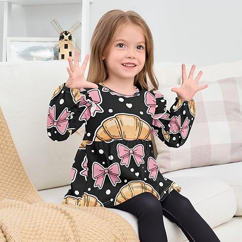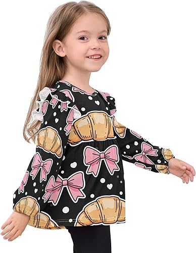 Toddler Girl Long Sleeve Shirt Ruffle Kids Blouse Tops Tee Shirt 18M-5T(Bows Croissants Hearts Dots,4T)