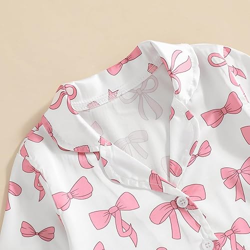 Package Included-- 2 Piece Toddler girl long sleeve pajama set ( Bow Print Long Sleeve Botton Down Shirt & Long Pants); Fashion toddler girls sleepwear night clothes, unique & tredny design makes your little girl sweet and adorable