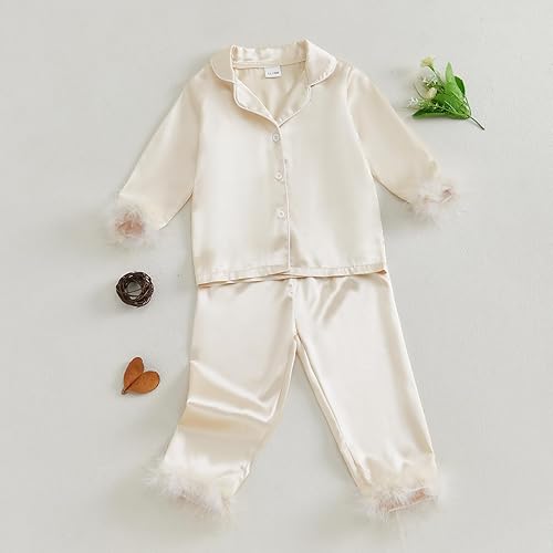 Features: Kids satin pajamas, silk pajamas for girls, baby girl fuzzy trim pajama. Long sleeve, button down, lapel neck, fuzzy feather trim, classic solid color design is never out of fashion. Toddler girl nightgown, nightgowns for toddler girls, kids silk pajamas girls, girls valentines day pajamas