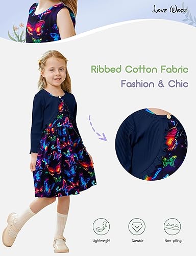 Stylish 2 Piece Set: Warm and lightweight toddler floral dresses and cardigan set, exquisite workmanship, soft texture, skin-friendly, brings your girls comfortable feelings, and it's perfect for every season spring, summer, autumn and winter