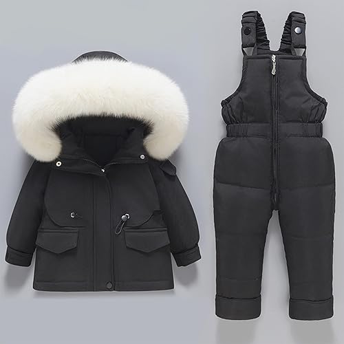Toddler Girls Boys Two Piece Snowsuit Kids Winter Warm Hooded Puffer Jackets Snow Bib Overalls Set Outdoor Ski Suit(01 Black,2T)