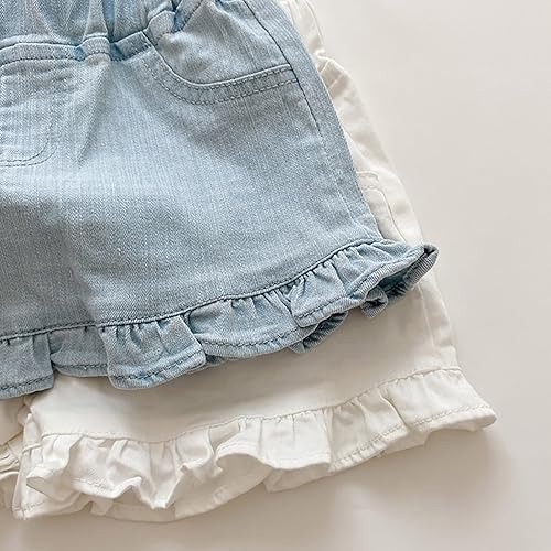 Toddler Girls Casual Denim Shorts Kids Love Heart Embroidered Jeans Baby Summer High Elastic Waist Shorts with Pockets(A-white,18-24 Months)