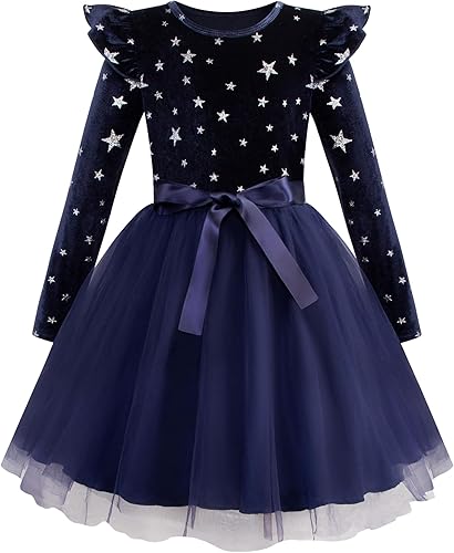 【Designs】: This girls long sleeve dress has cute ruffles, and the soft lining and fluffy double-layer star mesh can create a dazzling effect. The satin belt can be flexibly adjusted to highlight the waist curve, and the A-line skirt provides ample space for spinning and dancing, which can not only add elegance, but also add a touch of bright color to the joyful festival