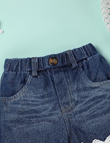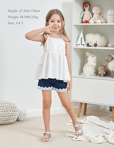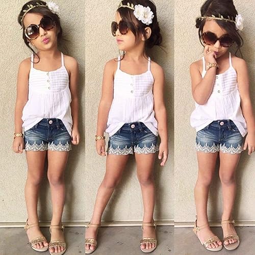 Toddler Girls Clothes Sleeveless Camisole Ruffle Tops and Jean Short Sets 1-7T Girl Clothes(A-white,4-5T)