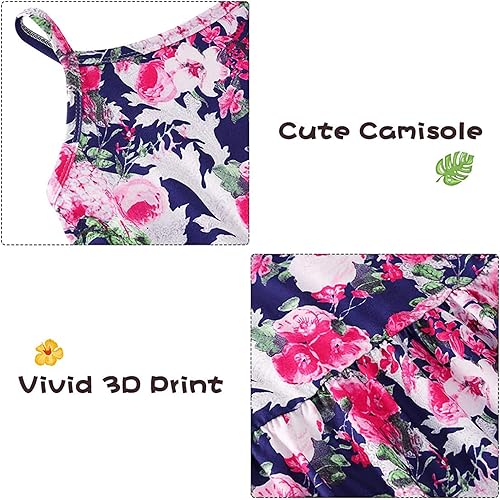 Toddler Girls Jumpsuits Floral Rompers Spaghetti Strap Overalls Backless Jumpsuits Wide Leg Harem Long Pants Cute Rompers(Navy,1-2T)