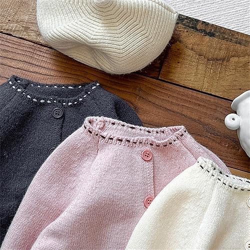 Toddler Girls Knit Cardigan Long Sleeve Crewneck Button Down Sweater Fall Kids Solid Soft Open Front Coat(Pink,6-12 Months)