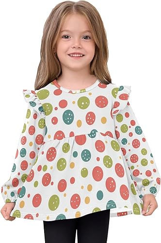 Soft Fabric: 95% cotton, 5% spandex Long Sleeve Ruffle T-Shirt, gentle on kids'skin. Maintains good condition after washes, reduces re-purchase times, fit active girls'daily exploration.