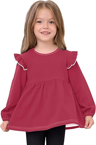 Lovely Design: Ruffled sleeves, layered hem, A-shape Long Sleeve Shirts, looks cute. Avoids dull outfits, matches easily with shoes/hats, great for school and playdates.