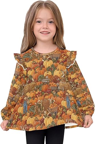 Cute Design: Ruffled sleeves, layered skirt, A-shape Baby girls Long Sleeve Shirts enhances cuteness. Avoids plain looks, matches pants/skirts easily, great for school events and outdoor adventures.