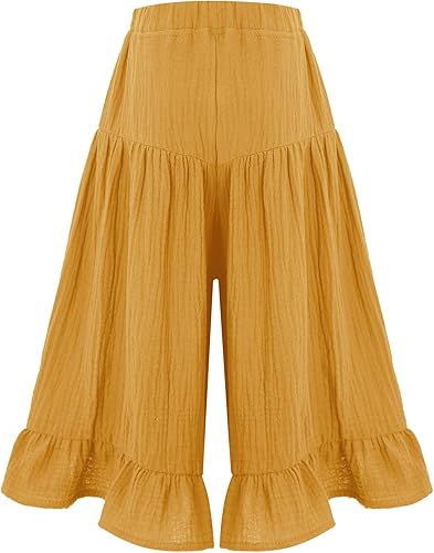 Elastic waist is easy to wear. Wide legs are casual to fit. Plain color with ruffle bottom looks cute