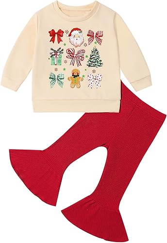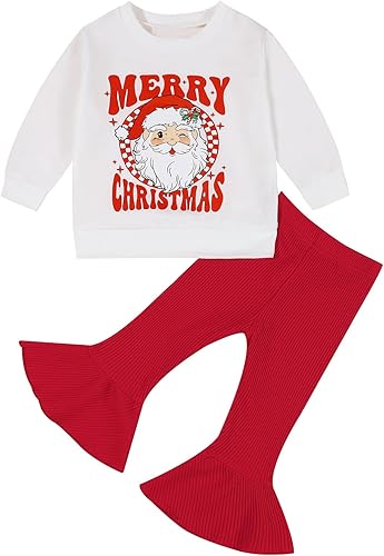 What You Get: 1x baby santa sweatshirt top + 1x bell bottom pants. Best gift for your little princess!
