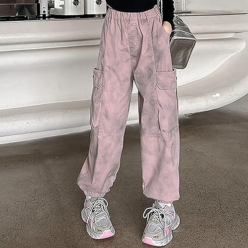 Toddler Jogger Cargo Pants Elastic Waste Straight Multi Pockets Denim Pants Boys Girls Wide Leg Fall Trousers Bottom(Pink,11-12 Years)