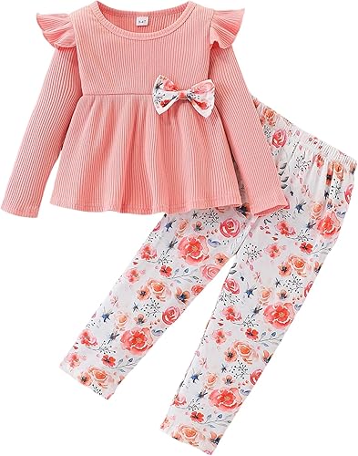 UNIQUE DESIGN---Butterfly ruffle top + floral trousers, delicate and fashionable butterfly lace design, this trousers suit for girls will bring joy to your little one, she will get a lot of compliments and won't want to take it off.
