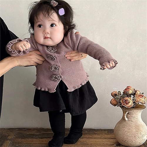 Toddler Kids Cute Cardigan with Flower Knit Button Boys Girls Ruffle Long Sleeve Coat School Causal Sweater Birthday Outfits(Purple,18-24 Months)