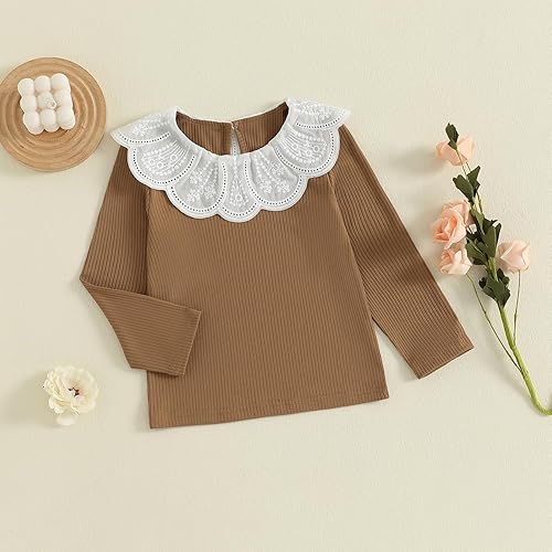 Design: The shirt for girls features solid color, doll collar, long sleeve, lace patchwork, makes your little girls so eye-catching and stand out in the crowd