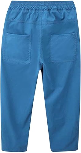 Toddler Kids Girls Solid Color Cool Pants Elastic Waistband Pants Summer Cotton Pocket Street Hip (Blue, 12-13 Years)