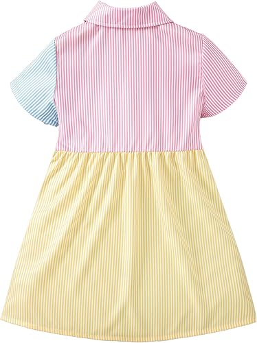 Unique Design: Collar neck, striped, colorblock, button front, short sleeve, knee-length shirt dresses, summer dresses, fashionable