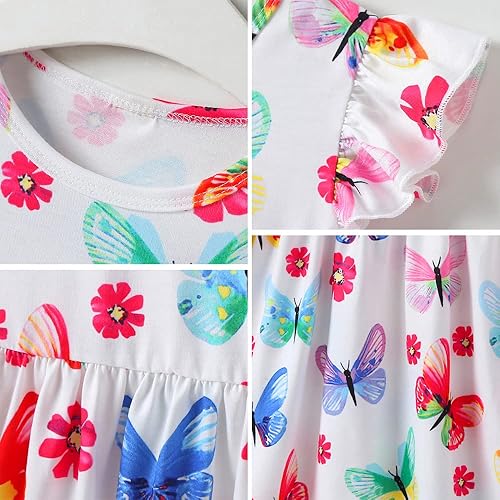 【DESIGN】Round neck, knee length, elastic waist, beautiful rainbow butterfly, make this girl's clothes more fashionable.