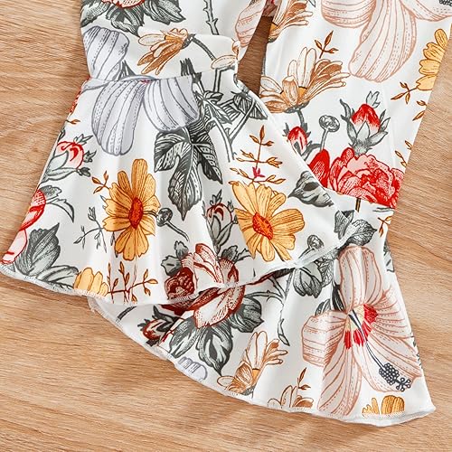 Toddler Romper Kids Girls Floral Flowers Prints Sleeveless Strap Jumpsuit Pants Outfits Set Baby Clothes(White,9-12 Months)