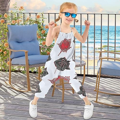 Toddler Rompers Baby Jumpsuits Girls Animal Sleeveless Onesie Summer Fashion Black Red Roses 12m(3T)