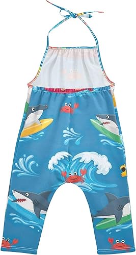 EASY ON EASY OFF: No-fuss design with stretchy back and tie shoulders cute halter toddler rompers makes dressing a breeze while keeping things secure and flexible
