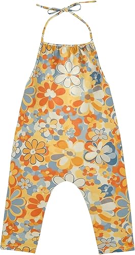 Toddler Rompers Jumpsuits Little Girls Backless Infant One-piece Retro Style Colorful Flowers Summer Clothes 1t(5T)