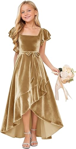 Material: Our Junior Bridesmaid Dresses are made of soft inner lining and quality outer layer of Velvet, the Velvet junior bridesmaid dress is comfy, lightweight, breathable and easy to wear. Super soft and comfortable and easy to move around in, full lining to protect the skin