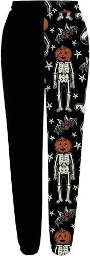 Trendy Sweatpants for Girls Boys Kids Elastic Waist Pockets Sport Halloween Print Pants Loose Trousers Preppy Kids(Black,11-12 Years)