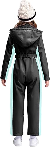 TTAO Kids Snow Suit for Girls Winter Snowboard Overall Jacket Hooded Windproof Waterproof Warm Snowsuit Black 8 Years