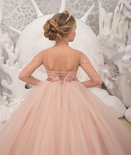 Easy Care Girl's Dress: Gently Hand Wash in Cold Water/do Not Bleach/hang or Line Dry. Tulle Lace Appliques Flower Girl Dresses for Wedding Ruffle Pageant Dress for Girls Long Princess Birthday Party Ball Gown Lace Prom Dresses for Girls