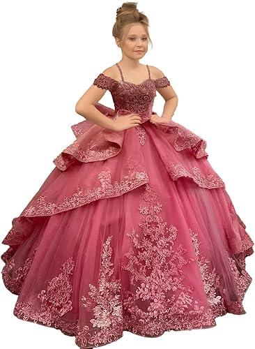 Design Highlights: The Tulle Ball Gown Dress features an elegant off-shoulder design with delicate lace and embroidery, adding a touch of grace. The multi-layered skirt and large bow at the back create a charming and stylish look, making the flower girl stand out in any wedding. The Lace Applique,crafted from high-grade, soft lace fabric, the appliqués boast a delicate mesh structure that balances durability with a lightweight, cloud-like feel
