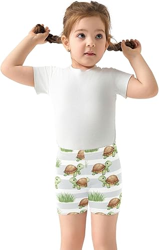 Turtle Grass Gray Stripe Girls Bike Shorts Toddler Soft Cotton Cartwheel Under Dress Dance Shorts(Multi-turtle Grass Gray Stripe,10 Years)