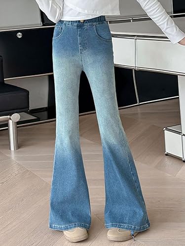 Tween Girl's Flare Jeans High Waisted Bell Bottom Denim Pants Cute Y2K Streetwear with Pockets 6-14 Years(09 Blue,5-6 Years)