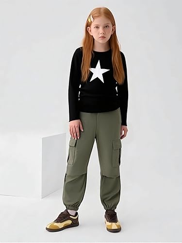 Trendy Style: This two-piece set features a bold star print long-sleeve top and matching cargo pants—perfect for fashion-forward tween and teen girls aged 7–16. A standout look for school, casual days, or weekend hangouts