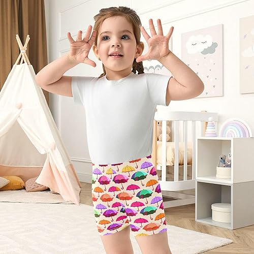 Umbrella Colorful Girls Bike Shorts Toddler Soft Cotton Active Under Dress Shorts(Multi-umbrella Colorful,10 Years)