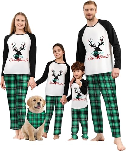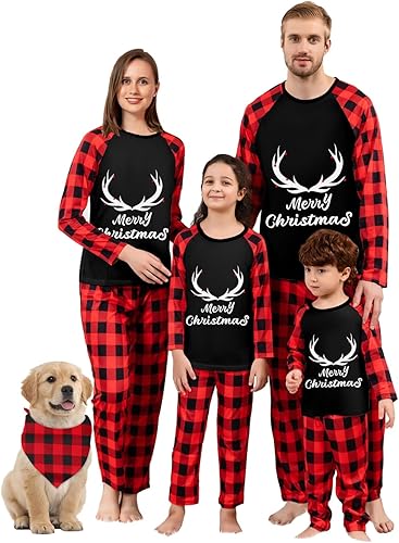 Features: Family christmas pjs matching sets feature cute cartoon prints or letter prints, long sleeve round neck tops, classic plaid long pants, elastic waist, easy to put on and off.
