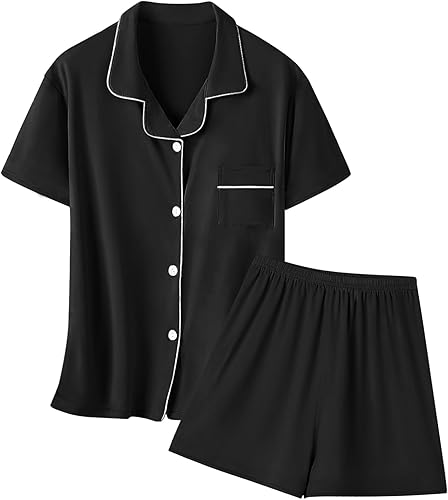 Umeyda Girls Modal Button Down Pajamas Set, 2Pj Nightwear Sleepwear for Teen Kid 2 Pcs Loungewear, Black, 11-12 Years = Tag 160