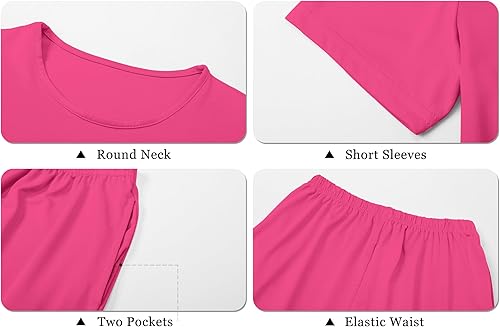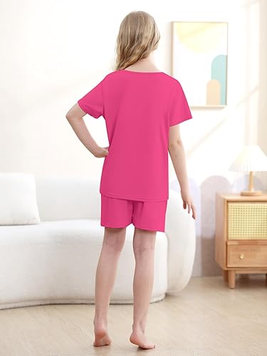 Features: Girls pajamas set featuring short sleeved round neck top and easy pull-on shorts,easy for kids to take on/off, fit for all seasons.Tee is loose fit, and bottoms are soft with a stretchy elastic waistband and a pair of pockets.