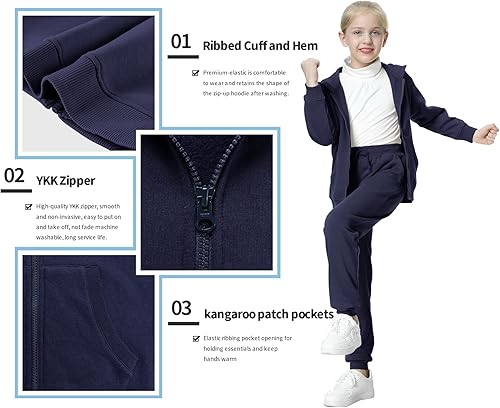【Size】Girls&Boys zip up hooded sweatshirts sizes XS (3-4T), S (5-6Y), M (7-8Y), L (9-10Y), XL (11-12Y) are based on America size standard. Please refer to UNACOO size chart and choose the right size base on your kids actual height and weight or the normal size your kids wear now