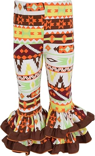 Garment: A two piece outfit including a themed long sleeve top and pair of printed pants with a double ruffle near the ankle. Available in a wide variety of seasonal prints and colorways.