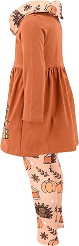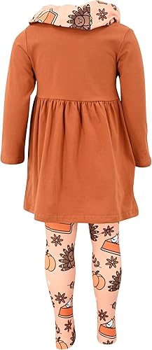 Unique Baby Girls Kids Toddler 3pc Outfit Set Long Sleeve Soft Knit Tunic Top Leggings and Scarf(Turkey Pie Leaves,4T)