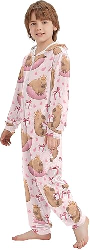 Unisex Kids Jumpsuits Capybara Love Gift Box Pattern Warm Fuzzy Hooded Rompers for Boys and Girls(Multicolor,4T)