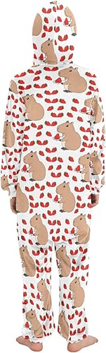 Unisex Kids Jumpsuits Cute Capybara Juicy Strawberry Warm Fuzzy Hooded Rompers for Boys and Girls(Multicolor,9-11Y)