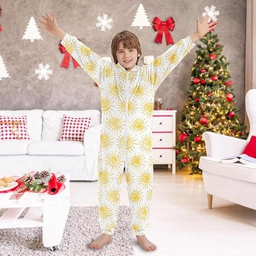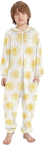 Unisex Kids Jumpsuits Sun Drawings Warm Fuzzy Hooded Rompers for Boys and Girls(Multicolor,7-8 Years)